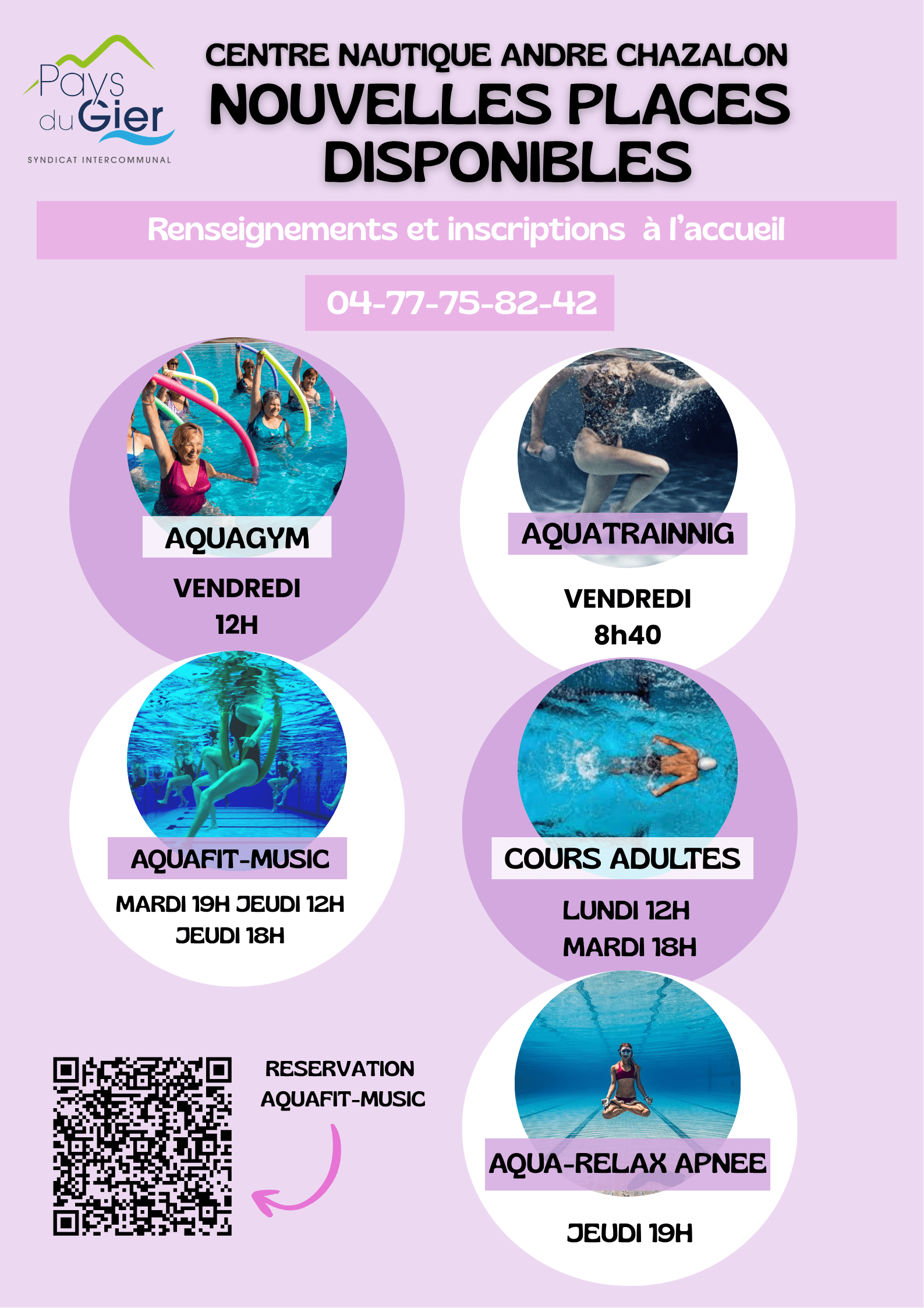 Les cours ayant commencés, les inscriptions se déroulent à l’accueil de l’établissement, à l’exception de l’activité AQUAFIT-MUSIC (vente en ligne avec réservation).