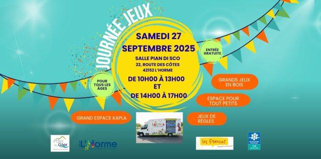 Venez nombreux à la journée jeux du samedi 27 septembre 2025 Salle Pian Di Sco à l’Horme.