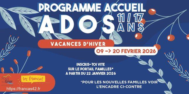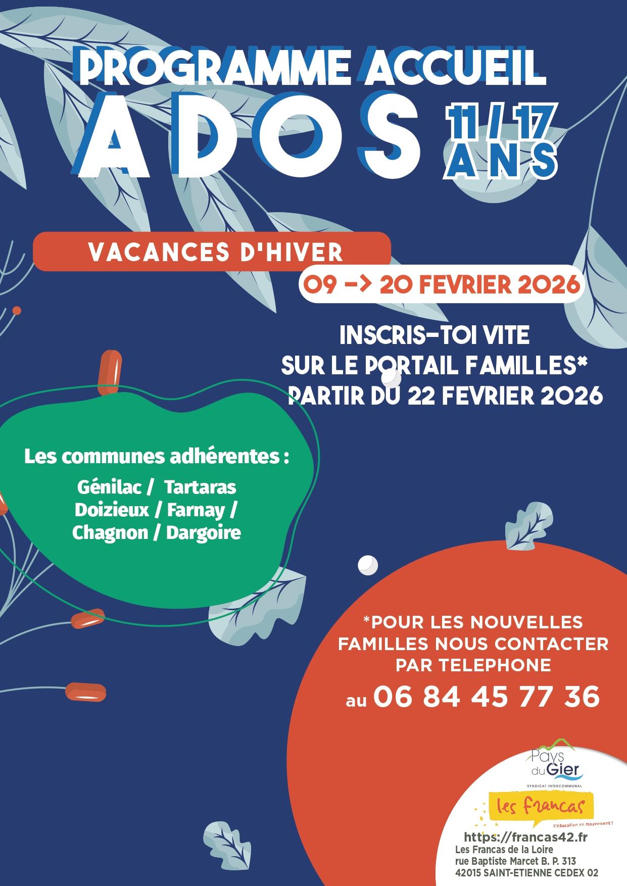 Programme accueil ados 11/17 ans pour les communes de Genilac, Doizieux, Farnay, Dargoire, Chagnon et Tartaras.