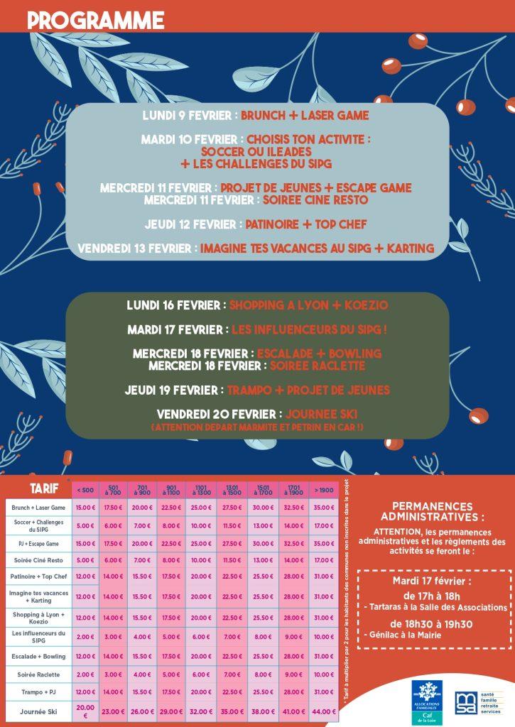 En amont de chaque période de vacances, un programme d’activités est proposé aux jeunes. Le programme d’activités est propre à chaque période, et distribué notamment par l’intermédiaire des mairies et des collèges.