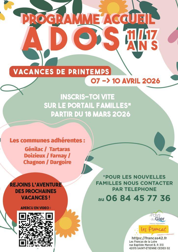 Pendant les vacances d’hiver, de printemps et au mois de juillet, les jeunes de 6 communes du Pays du Gier – Chagnon, Dargoire, Doizieux, Farnay, Genilac et Tartaras – ont la possibilité de participer aux animations jeunes organisées par le Pays du Gier en partenariat avec Les Francas de la Loire.