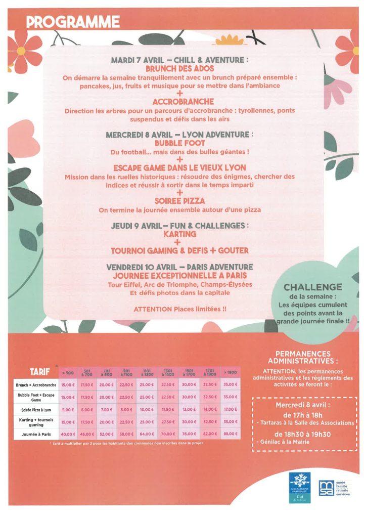 En amont de chaque période de vacances, un programme d’activités est proposé aux jeunes. Le programme d’activités est propre à chaque période, et distribué notamment par l’intermédiaire des mairies et des collèges.