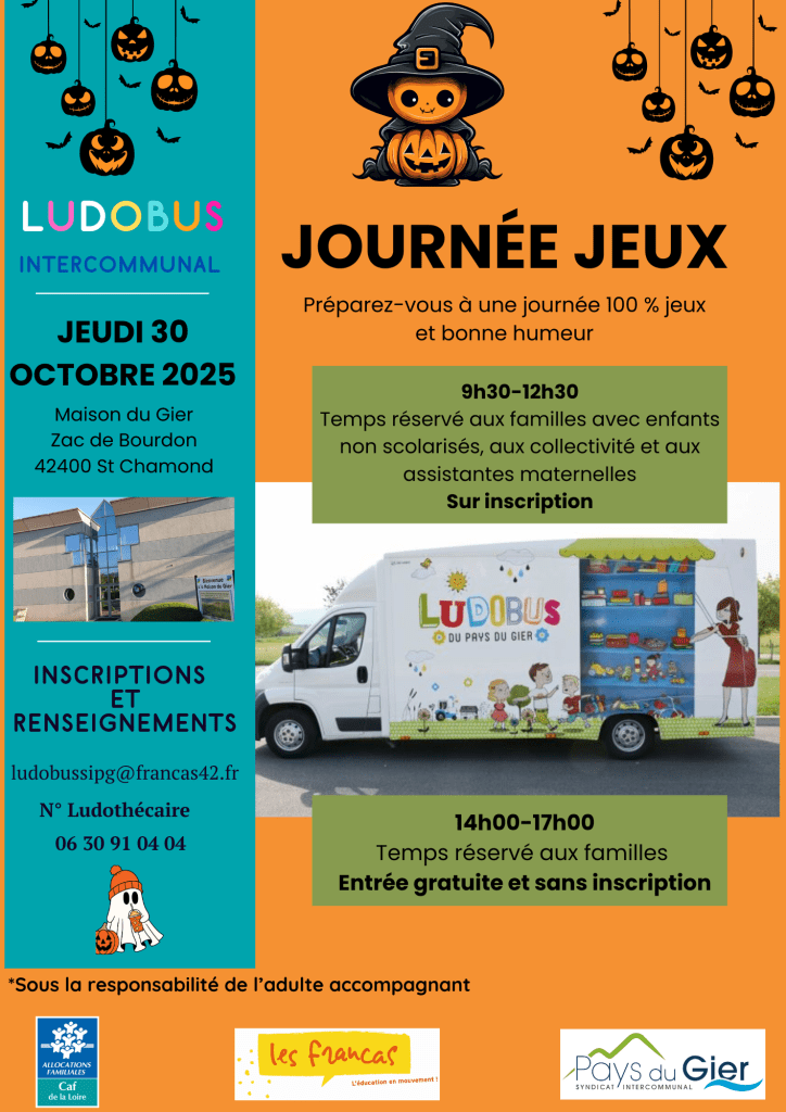 La ludothécaire intercommunale se tient à votre disposition (04 77 74 73 41 – 06 30 91 04 04 – francasludobussipg@orange.fr)
